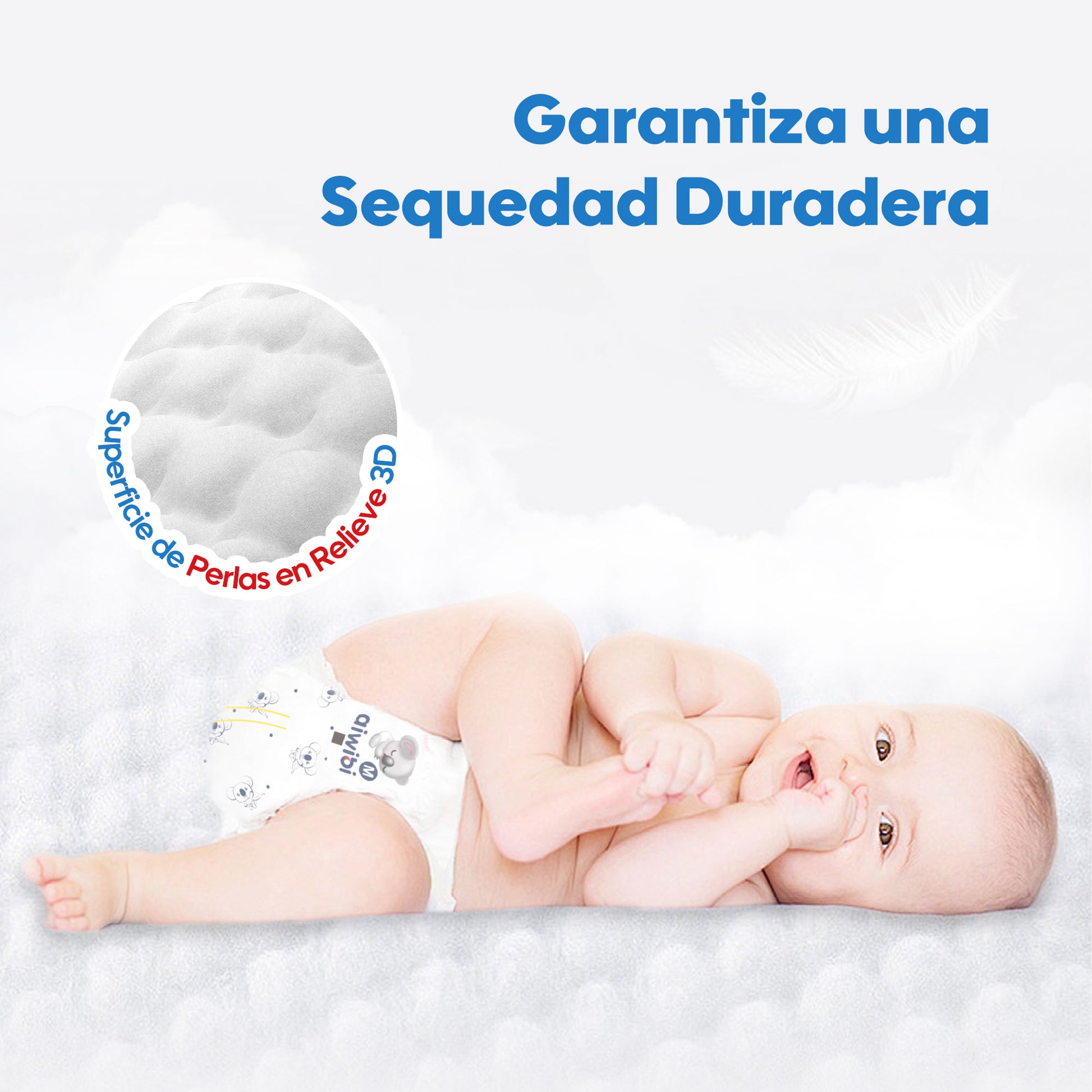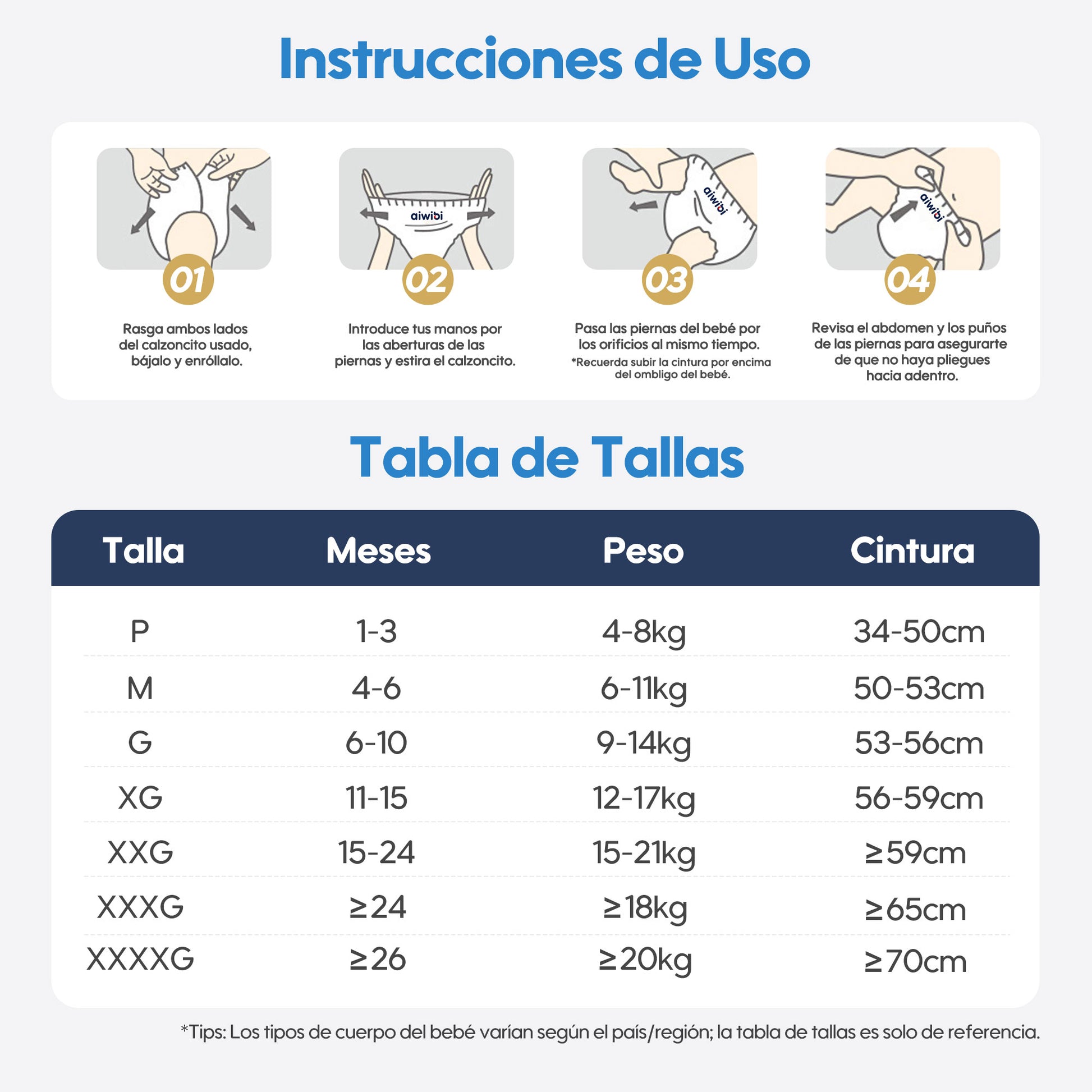 Además, para que el bebé tenga una mejor experiencia de uso, es necesario que el pañal se adapte al máximo al cuerpo del bebé y elegir la talla adecuada para él.