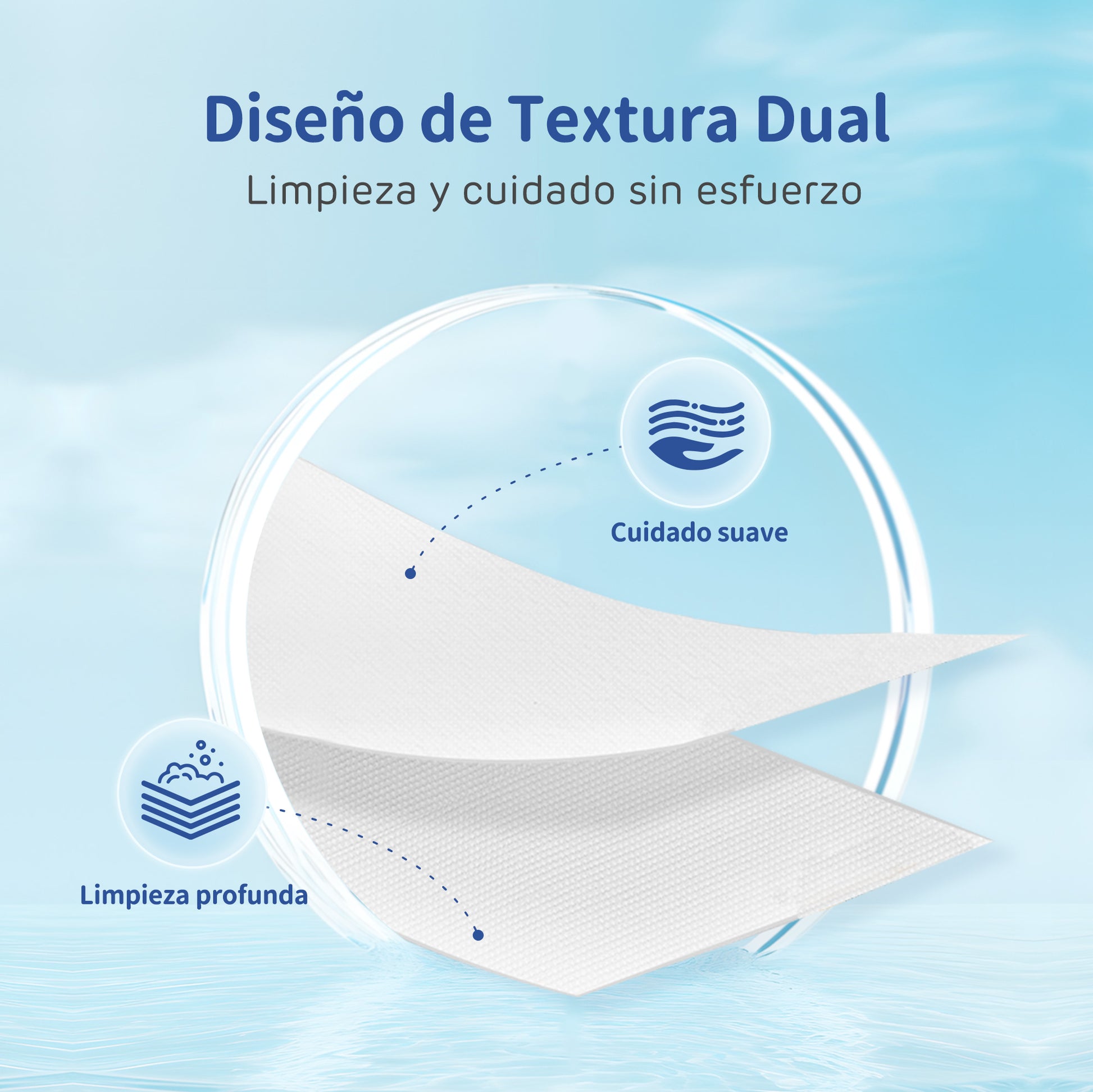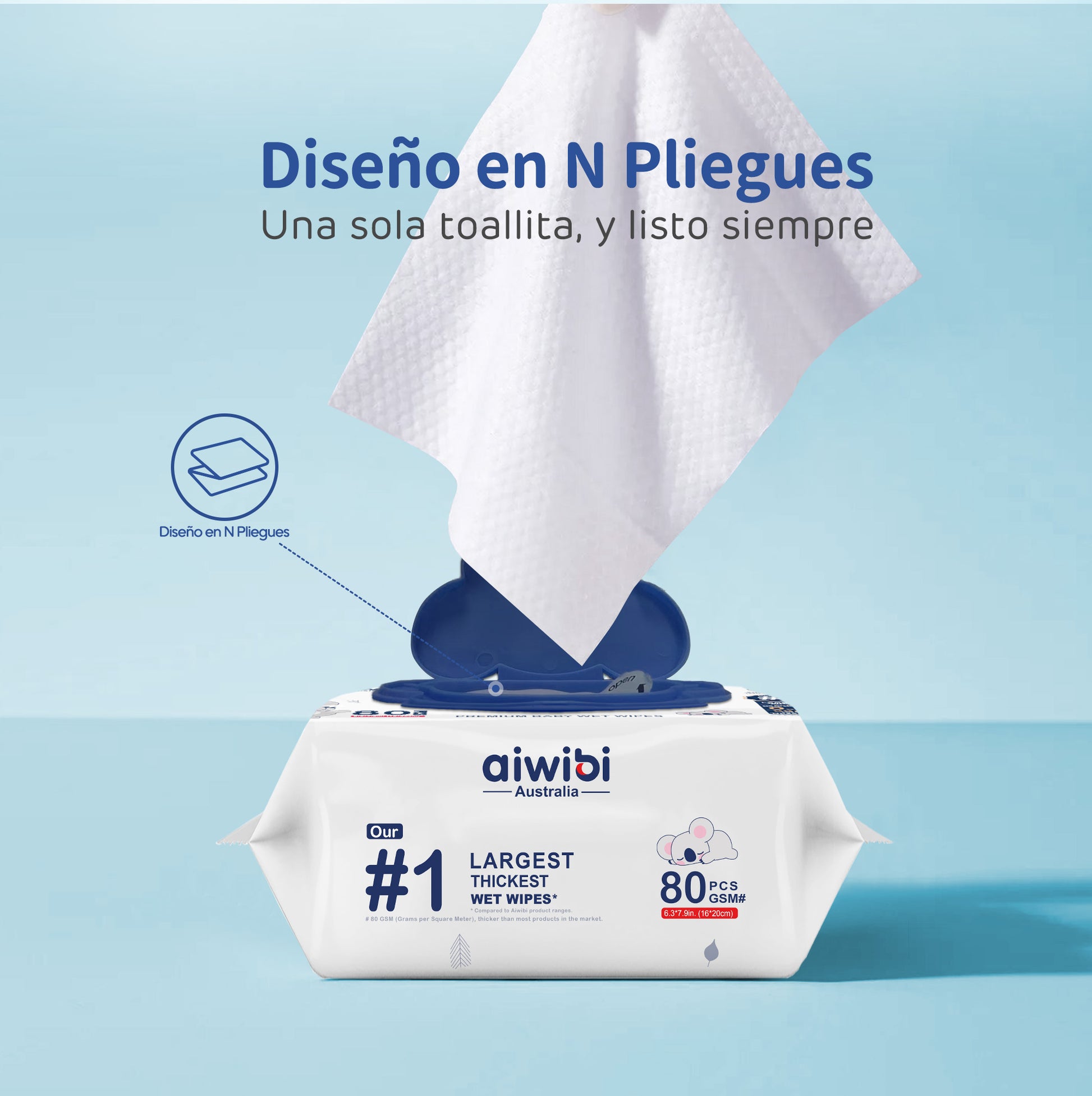 Hechas con material premium de 80gsm para una resistencia y suavidad inigualables, las toallitas húmedas premium Aiwibi ofrecen una textura lujosa y gruesa para una protección superior. Elaboradas con 99.91% agua pura EDI ultraalta e infundidas con extracto de aloe vera calmante, estas toallitas limpian suavemente e hidratan, perfectas para pieles sensibles. Las toallitas están hechas de fibras vegetales naturales, garantizando un toque suave, mientras que el diseño de textura dual proporciona una limpieza profunda y un cuidado suave. Sin fragancia, alcohol, colorantes ni químicos agresivos, cada toallita se dispensa de uno en uno para minimizar el desperdicio y proporcionar una limpieza eficiente.